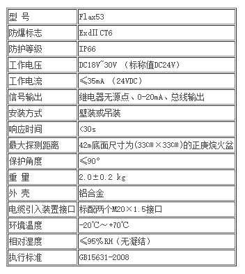 七.Flax53點型紅外火焰探測器使用和維護;1)探測器上電即正常工作;火警發生時,指示燈變為紅色。