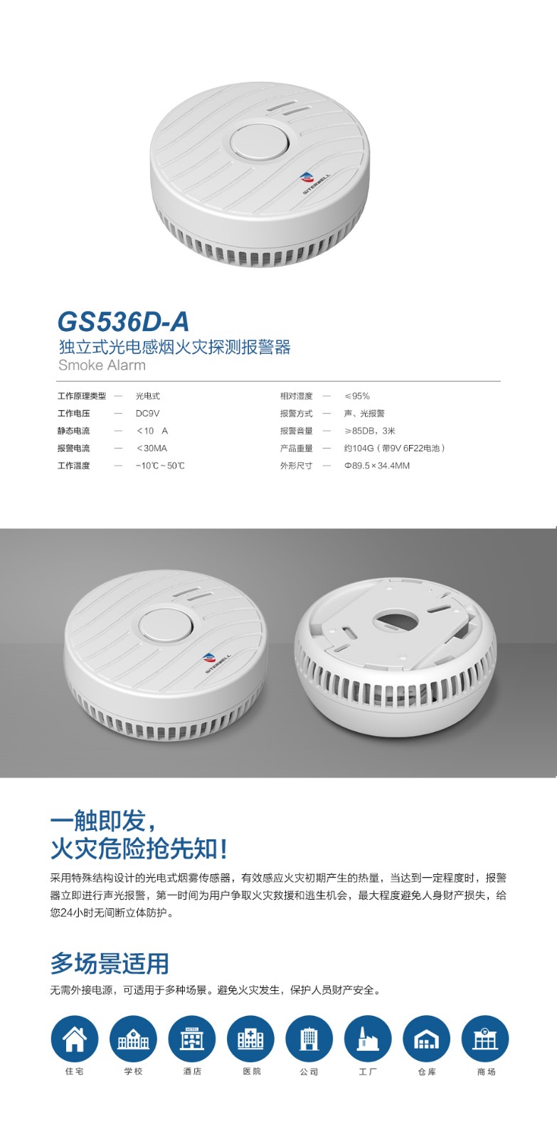 GS508D獨立式感煙火災探測報警器