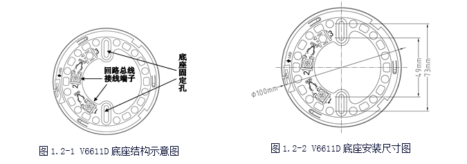 V6611D型探測器底座與V6611A型探測器底座通用,是V6611A型探測器底座的改進(jìn)型。其用于安裝V6621、V6621(Ex)、V6631、V6631(Ex)、V6641等型號的編碼型火災(zāi)探測器。