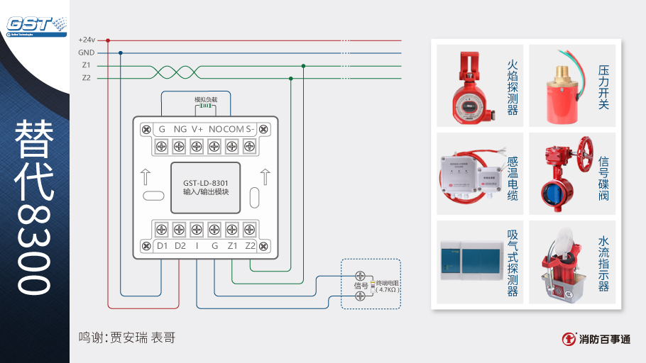 2、海灣8301模塊輸出端具有檢線功能,如果不接負載會報故障,所以利用這種接法在輸出端接一個電阻作為模擬負載,輸入端直接連接外部需要反饋信號的設備。